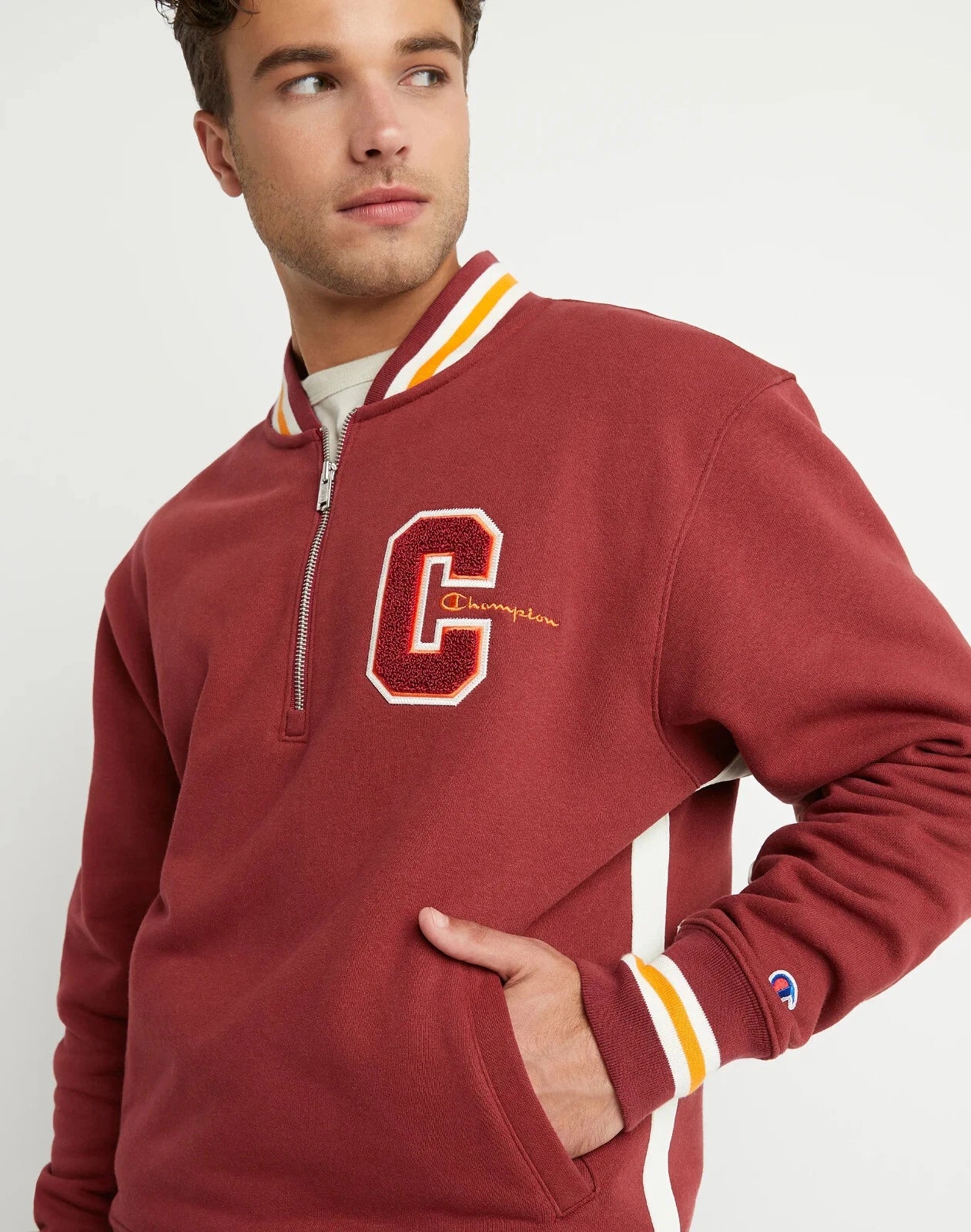 Champion V74895 Men's Champion Reverse Weave 1/4 Zip Embroidered Track Letter Jacket Cardinal (Only MEDIUM Left)