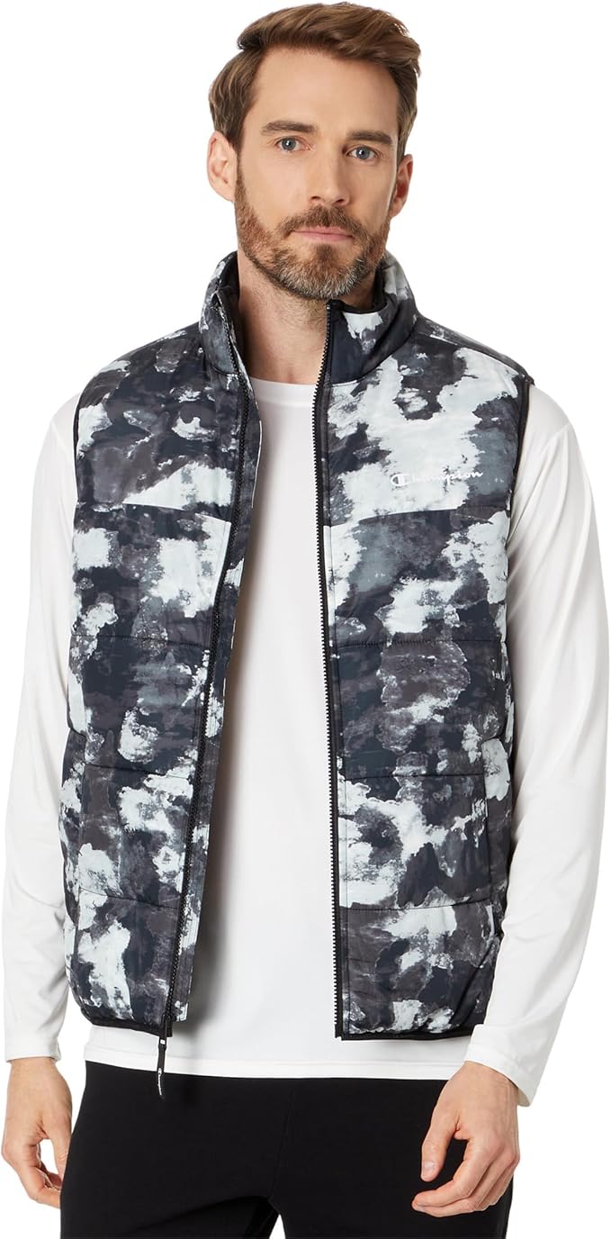 Champion V74729 Men's All Over Print Puffer Vest Hyperwash Black (Only Medium & Large Left)
