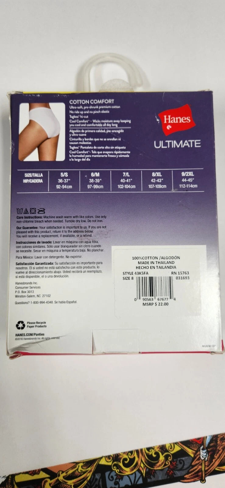 Hanes 43K5FA Ultimate 100% Cotton 5-Pack Comfort Hi-Cut Panties Briefs Size 8 X-Large