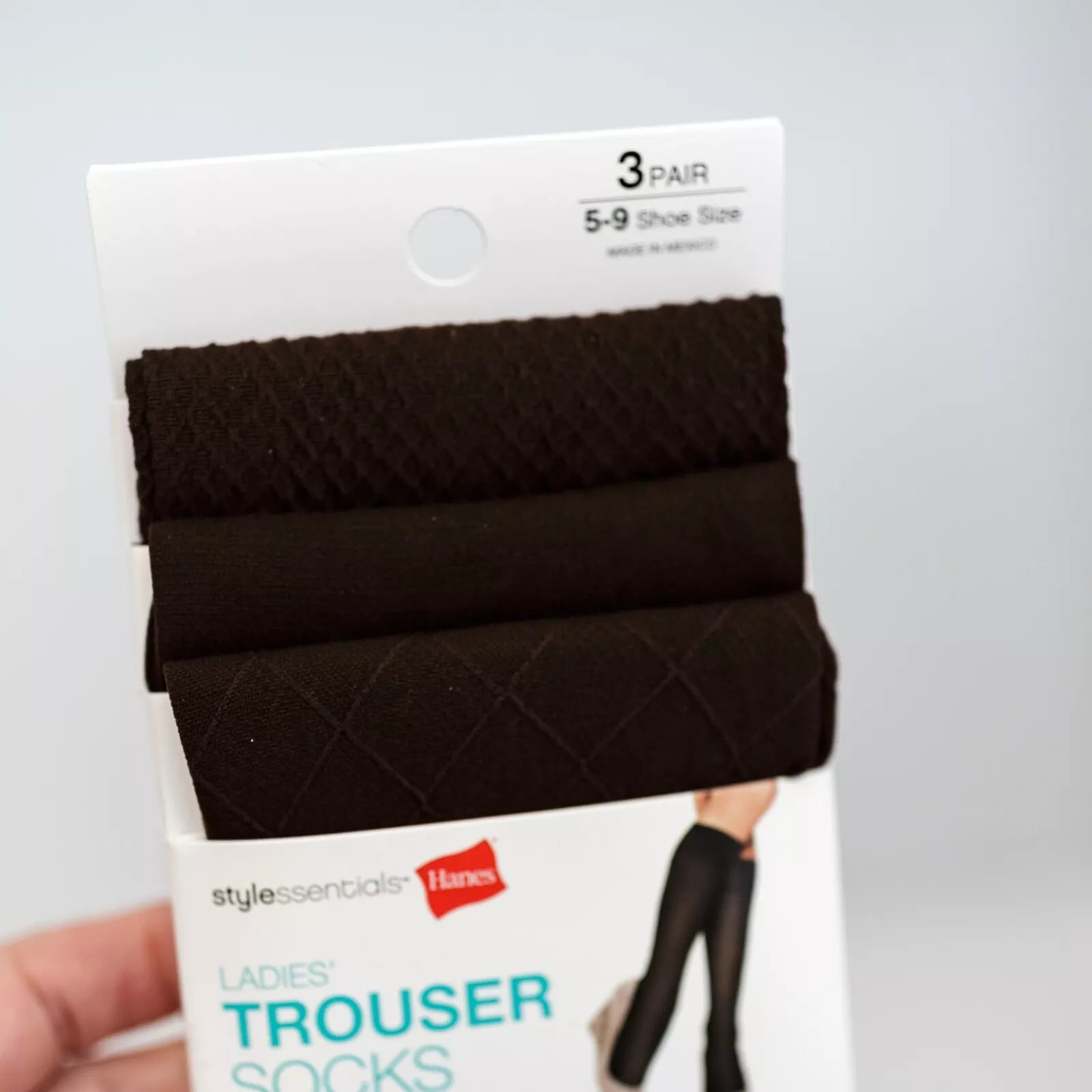 Hanes Q01034 Women's Style Essentials Ladies Trouser Socks 3-Pack Dark Brown Fits Shoe Sizes 5-9