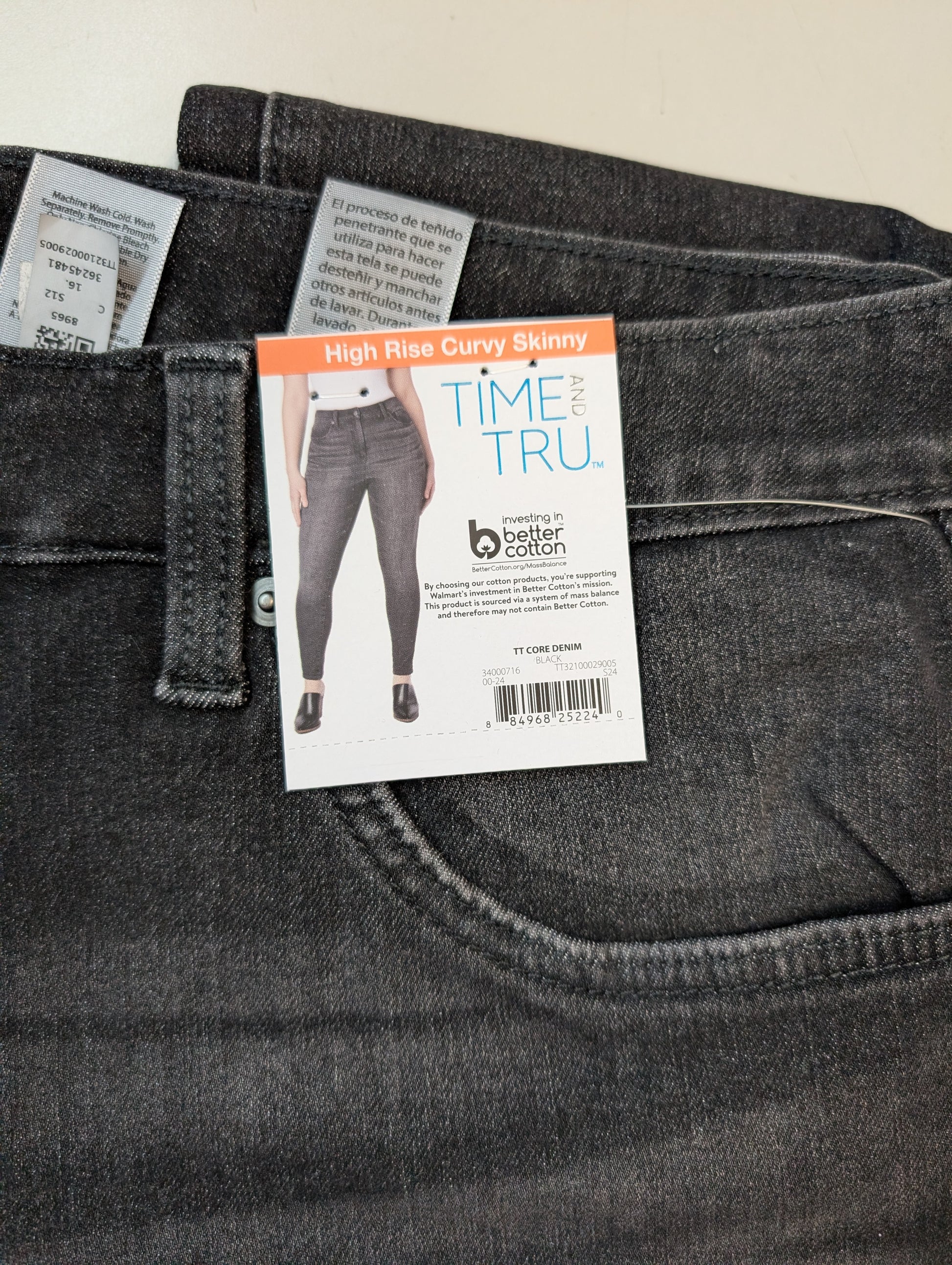 Time And Tru Women's High Rise Curvy Skinny Stretchy Jeans Black Wash (Pick Size 14 or 16)